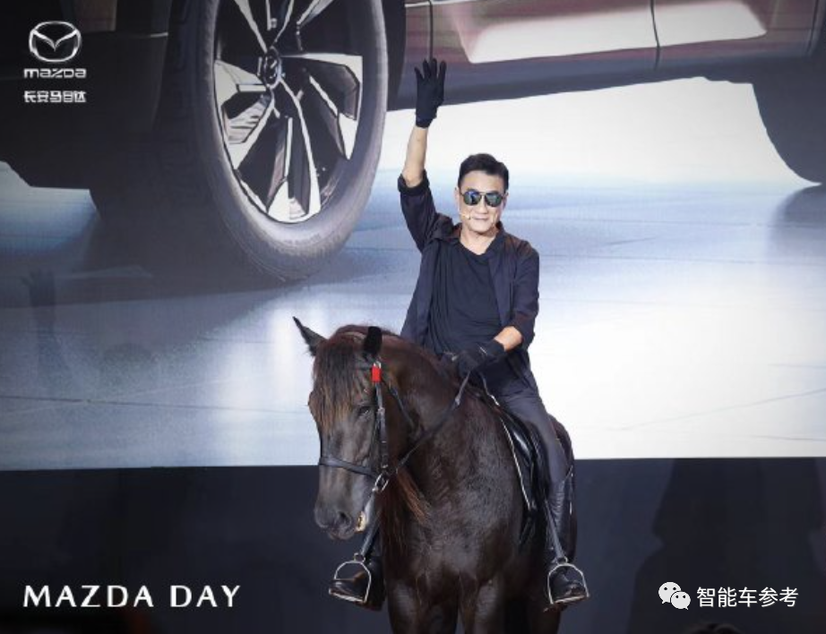 6月25日,长安马自达2023粉丝盛典上,“神秘代言人”梁家辉骑马登场,并为马自达站台: