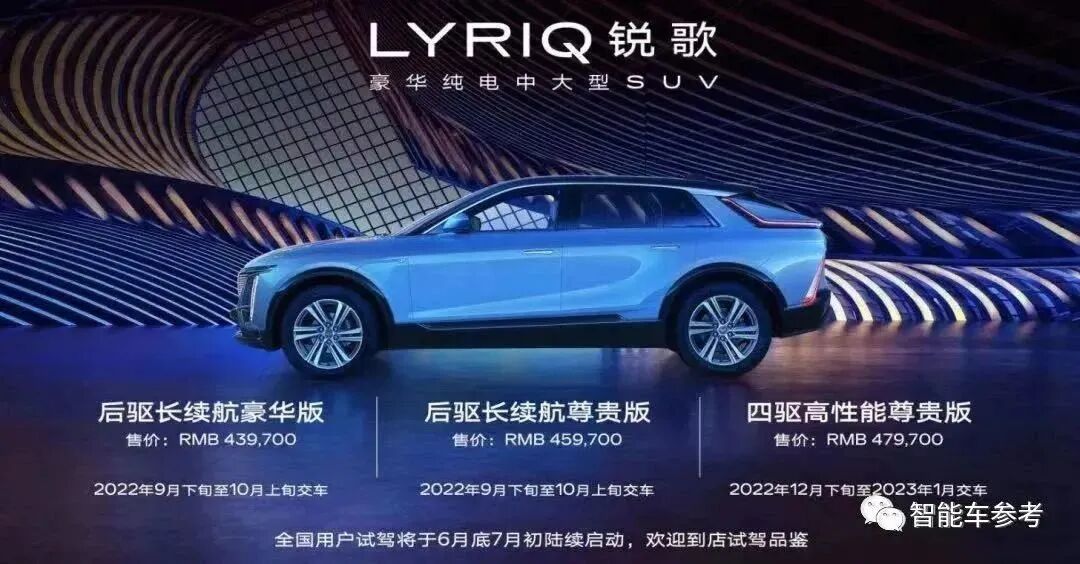 凯迪拉克锐歌,中大型SUV,通用旗下豪华品牌的首款纯电产品,最初定价43.97万-47.97万,有650km和600km两个续航版本。