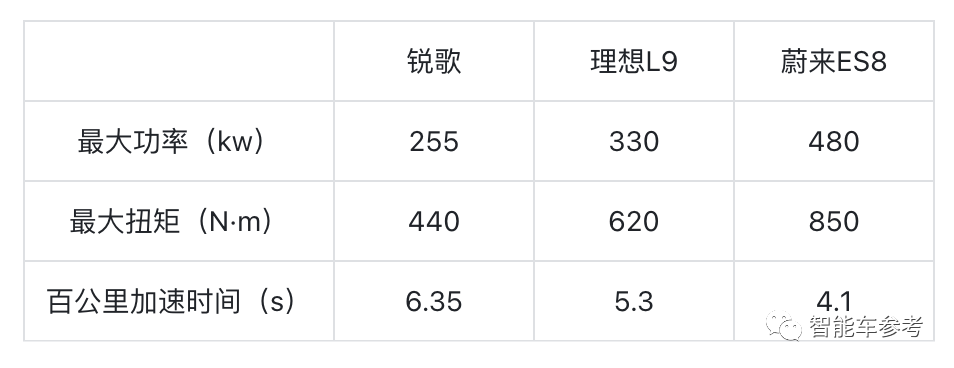 动力性能,锐歌与理想L9以及蔚来ES8的差距就更大了。