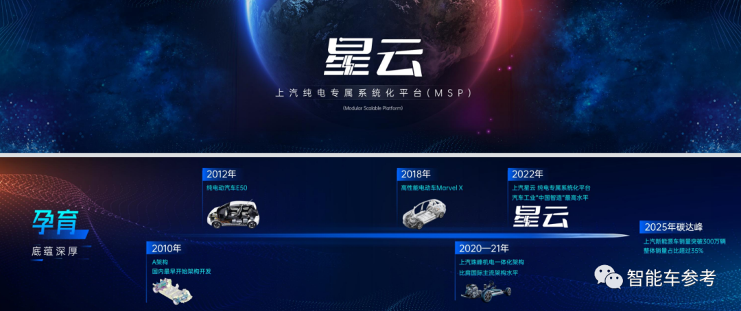 只不过智己亮相和第一款车上市时,没有把纯电平台作为主要宣传点,也没提出星云这个名字。