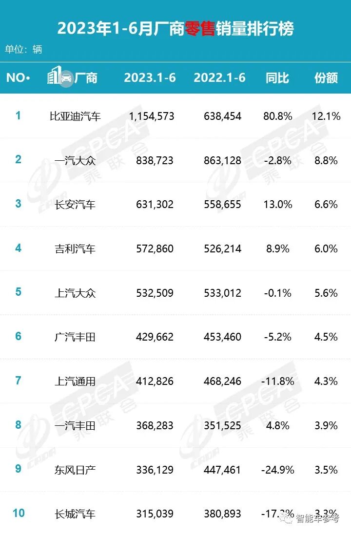 虽然大众集团仍然是中国销量第一,共卖出137.12万辆,但是这个成绩包括了南北大众,并且仅领先于第二名比亚迪21.67万辆。