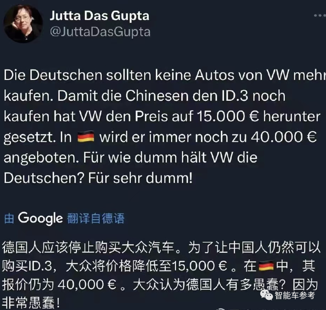 矛头明确指向大众汽车,说它割德国人的韭菜,应该全民抵制。