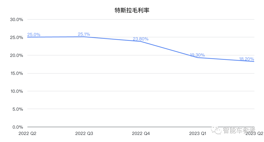 因为连续降价,二季度特斯拉的毛利率再次走低,达到三年多来最低水平,为18.20%。