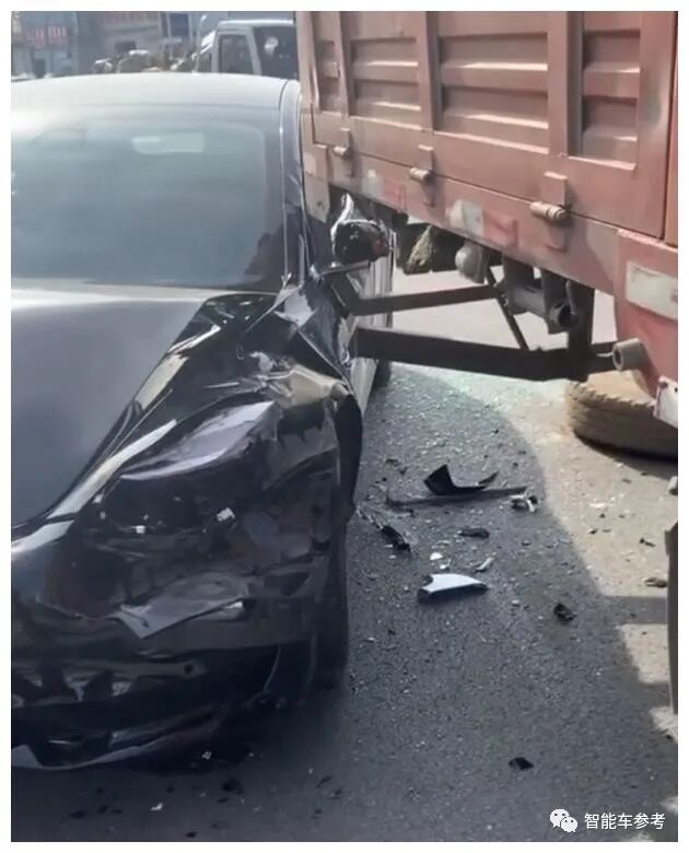 还有中国深圳的车主,搭载的是特斯拉最先进的FSD自动驾驶方案——号称可实现全自动驾驶能力,但对侧向大货车变道,毫无作为。