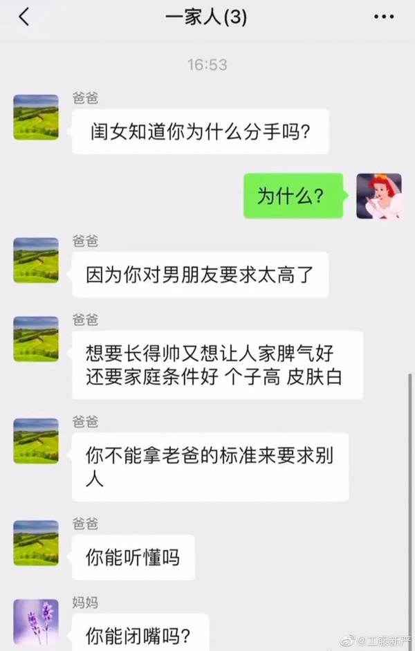 除了上面的毒舌老爸,还有超级自恋的: