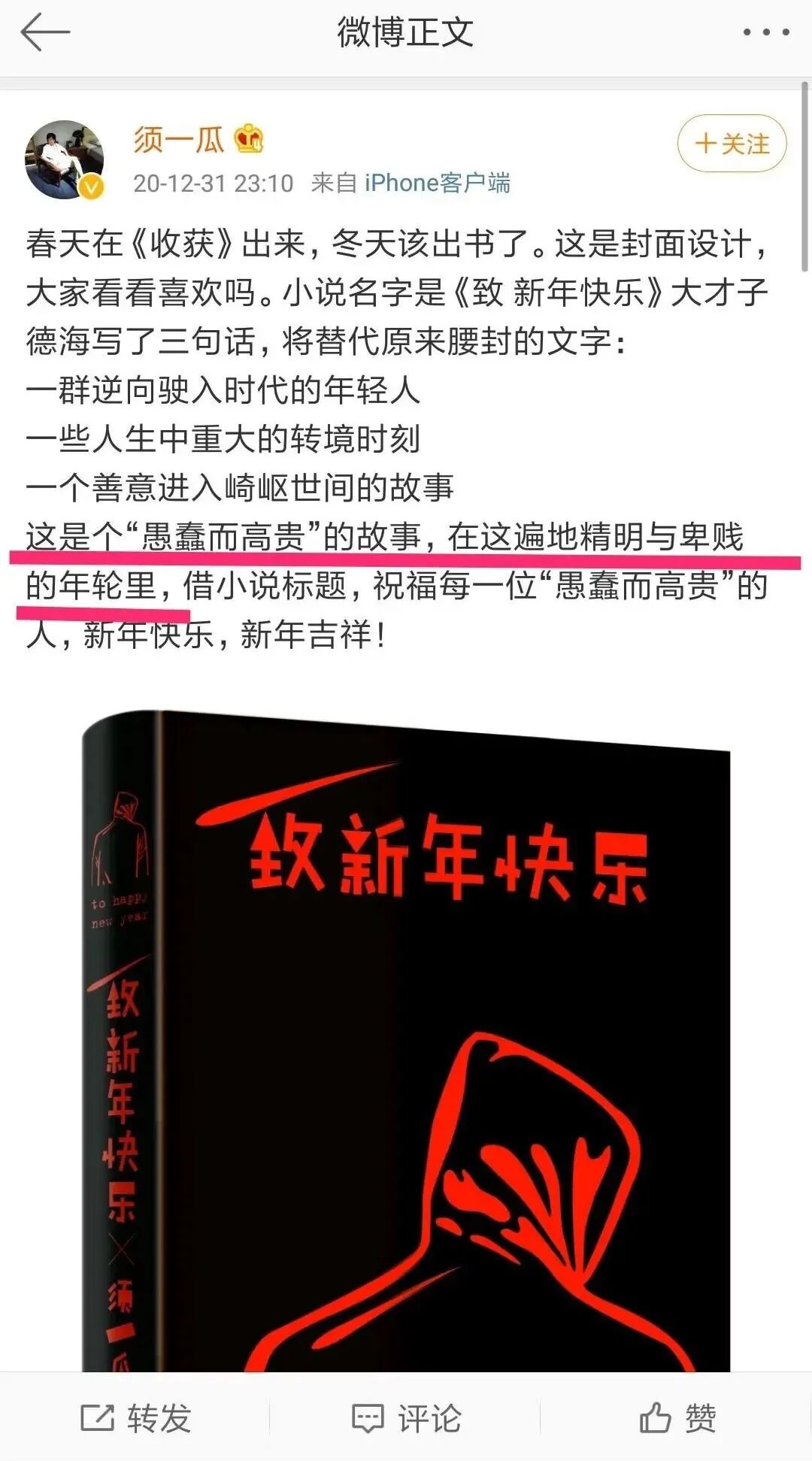 正如作者须一瓜对《致新年快乐》这本书的评价: