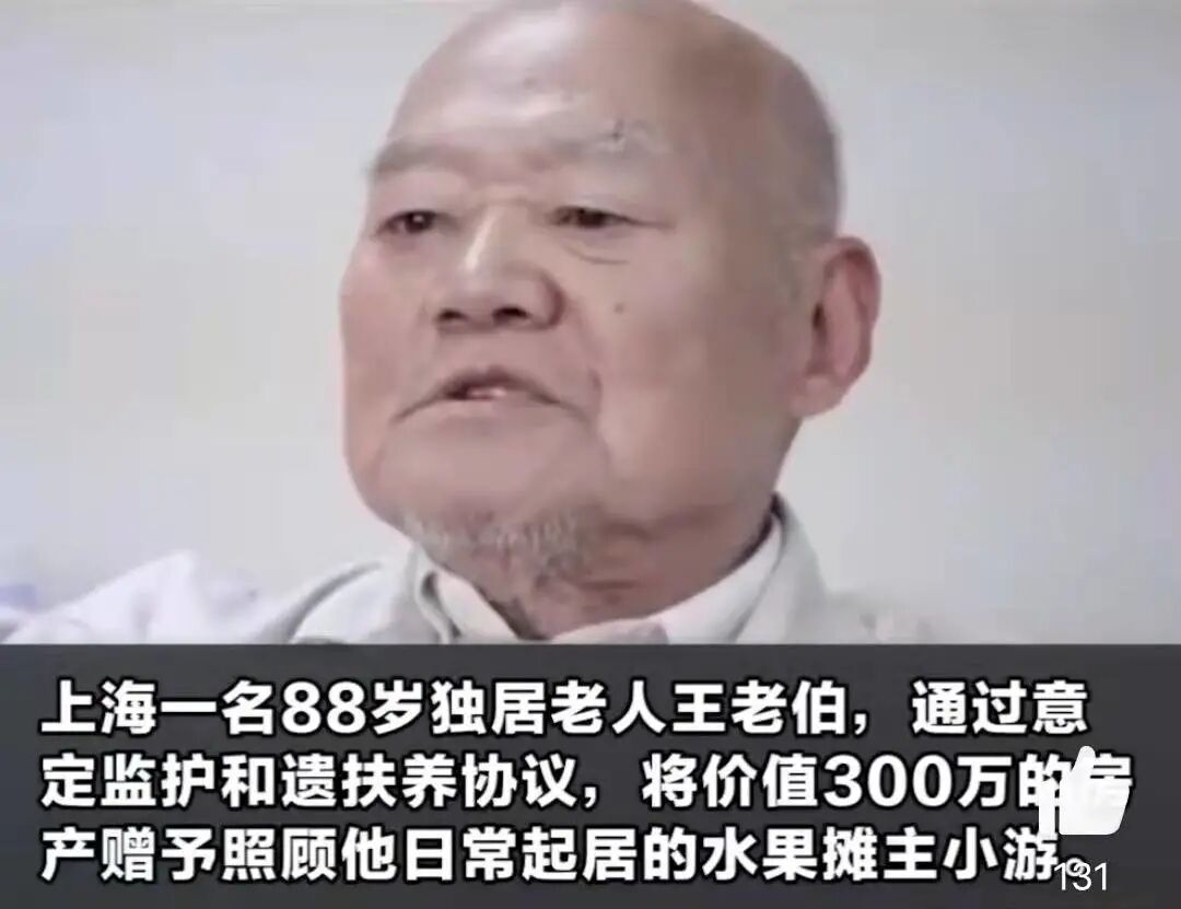 88岁的王老伯将名下300万的房产,送给了一直照顾他日常起居的水果摊主。
