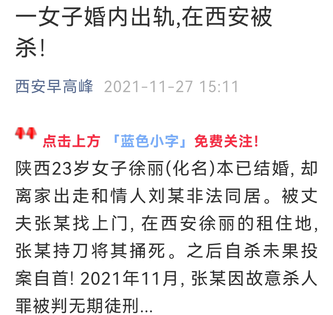 凶手不是别人,正是徐某的丈夫张某。因为老婆长期出轨,屡劝不回头,他才痛下杀手。