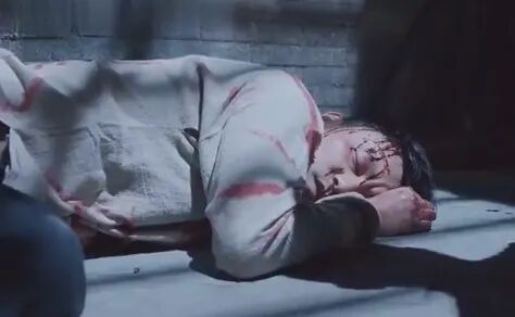 吟春心疼地跪下来,想给大先生洗脸、擦伤口。