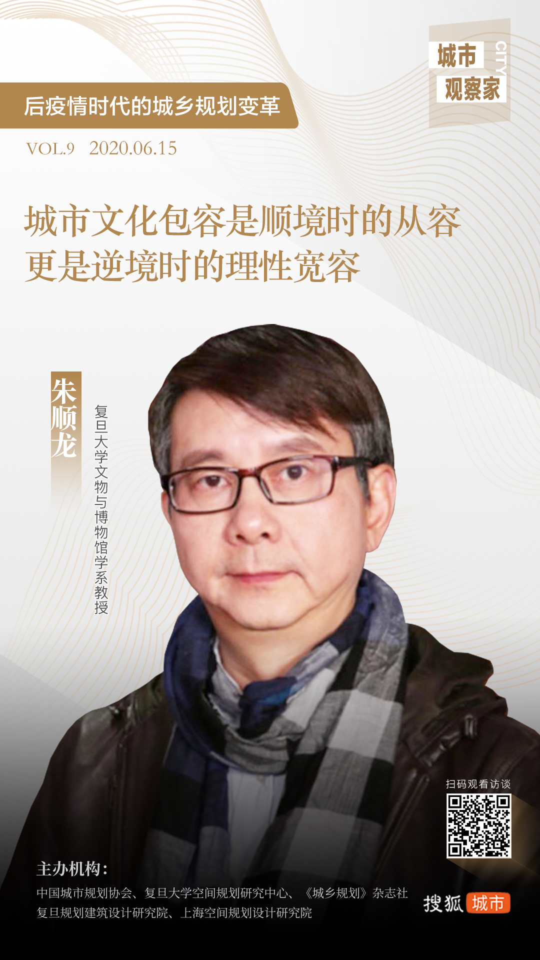 近日,由中国城市规划协会、复旦大学空间规划研究中心、《城乡规划》杂志社、复旦规划建筑设计研究院和上海空间规划设计研究院主办,搜狐城市作为全渠道媒体战略合作伙伴联合策划的系列访谈节目《后疫情时代的城乡规划变革》正式上线,第九期嘉宾为复旦大学文物与博物馆学系教授朱顺龙。