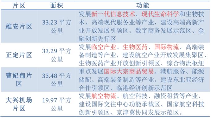《京津冀协同发展规划纲要》确定了京津冀协同发展四大战略合作功能区,即:曹妃甸、北京大兴机场临空经济区、天津滨海新区、张承生态功能区。在京津冀协同发展新空间中,战略合作功能区的地位和作用仅次于雄安新区和北京城市副中心。天津滨海新区是2015年设立的天津自贸试验区的范围。这次设立河北自贸试验区将曹妃甸、北京大兴机场临空经济区作为片区纳入是很自然的事。