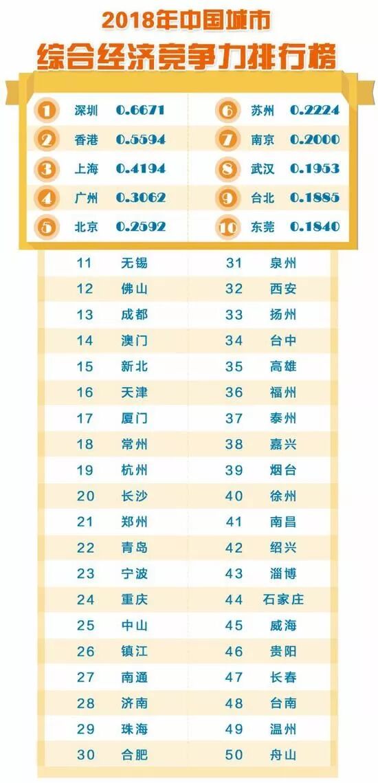 在城市竞争力方面,南北差距也在逐步扩大。依据中国社会科学院发布的《2018年中国城市竞争力报告》显示,综合经济竞争力指数十强城市中。北方只有1城入选。