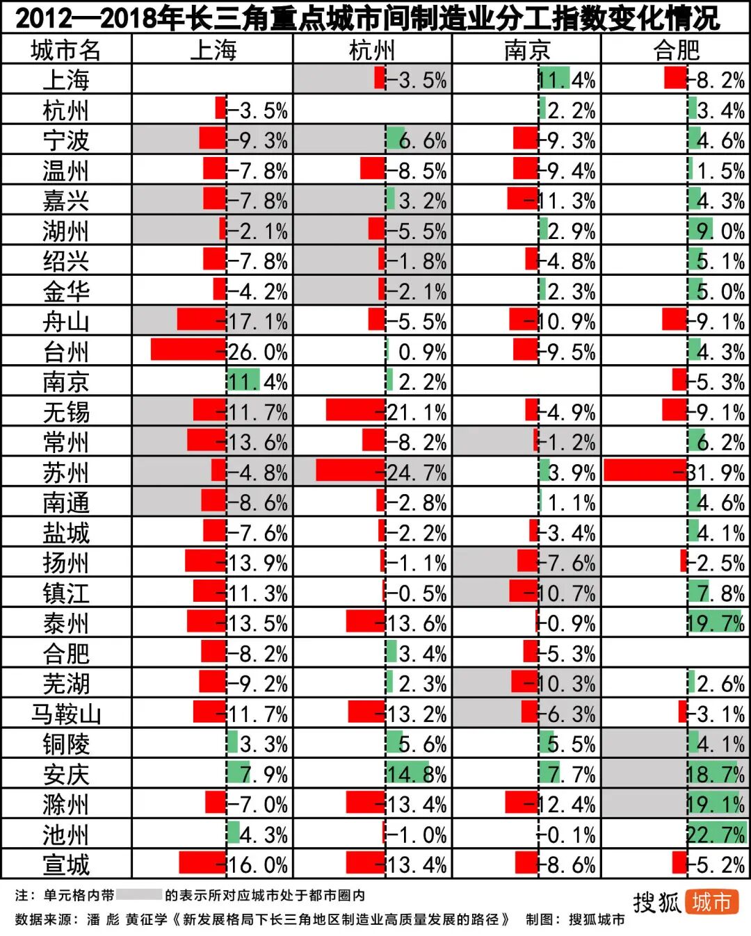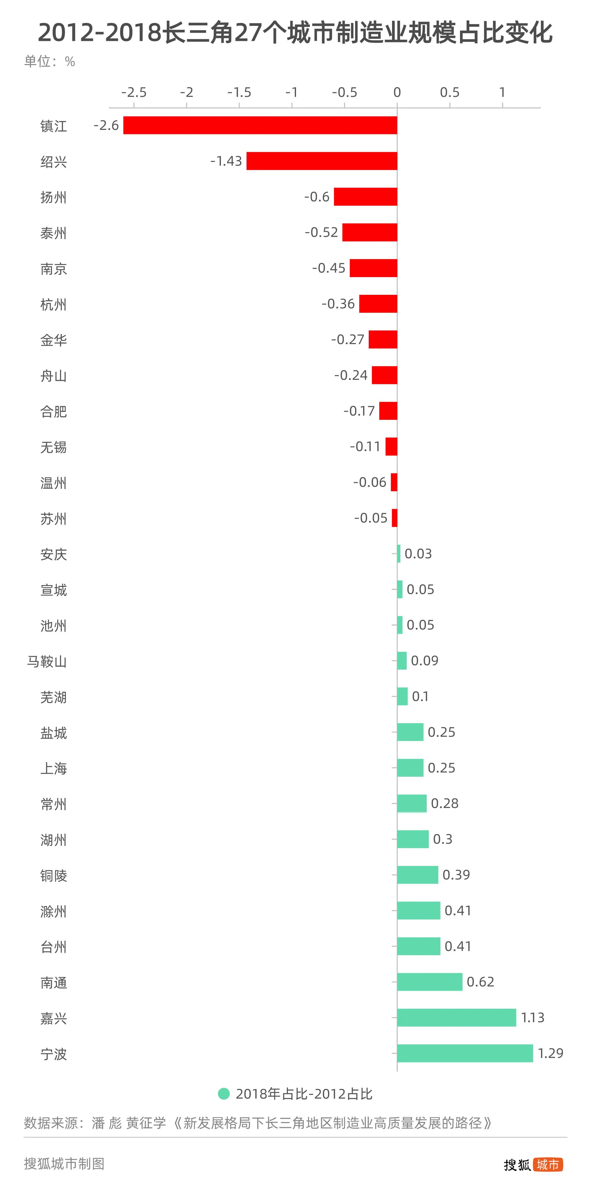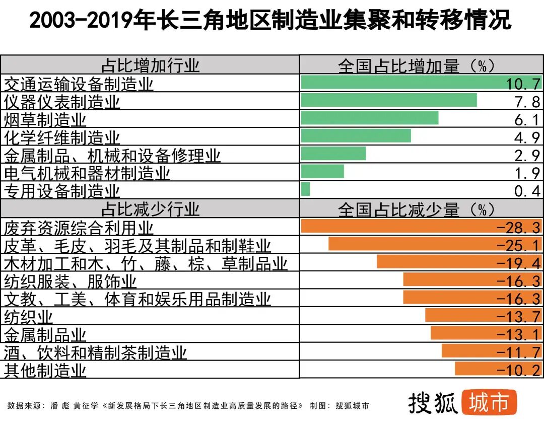 数据来源:潘 彪 黄征学 《新发展格局下长三角地区制造业高质量发展的路径》 制图:搜狐城市