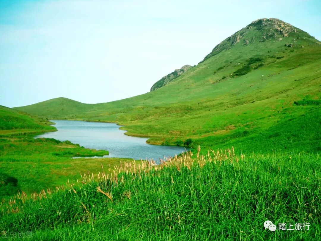 这不仅是一座岛,也是有山、有湖、有草、有海的好牧场。在嵛山岛200米高的山上,镶嵌着大小两个湖泊,有"海上天湖"之称。湖四周山坡平缓,形成了万亩草场,在碧波万顷的东海之上,竟出现了"风吹草低见牛羊"的草原风光,让人甚感神奇。