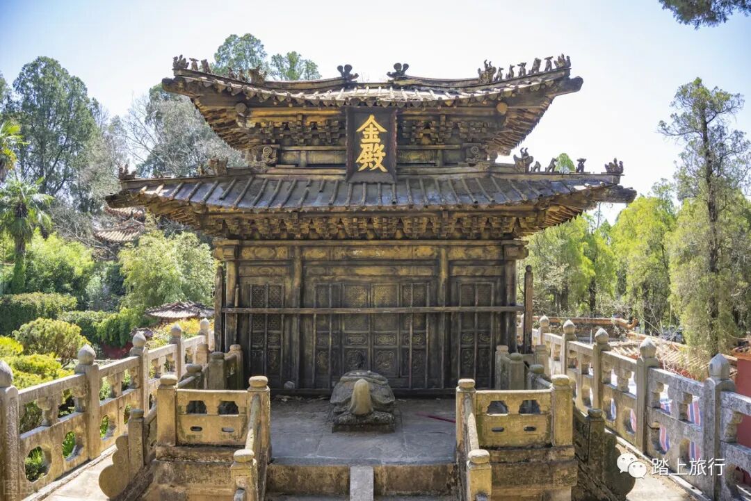 金殿,位于金顶之巅,是中国现存最大的铜铸镏金大殿,当年建造用了20吨精铜和300两黄金,金殿里面还有一盏600多年从未熄灭的长明灯。金殿里面供奉着真武大帝,朝拜者络绎不绝,进到里面祭拜要在紫宵宫预约。