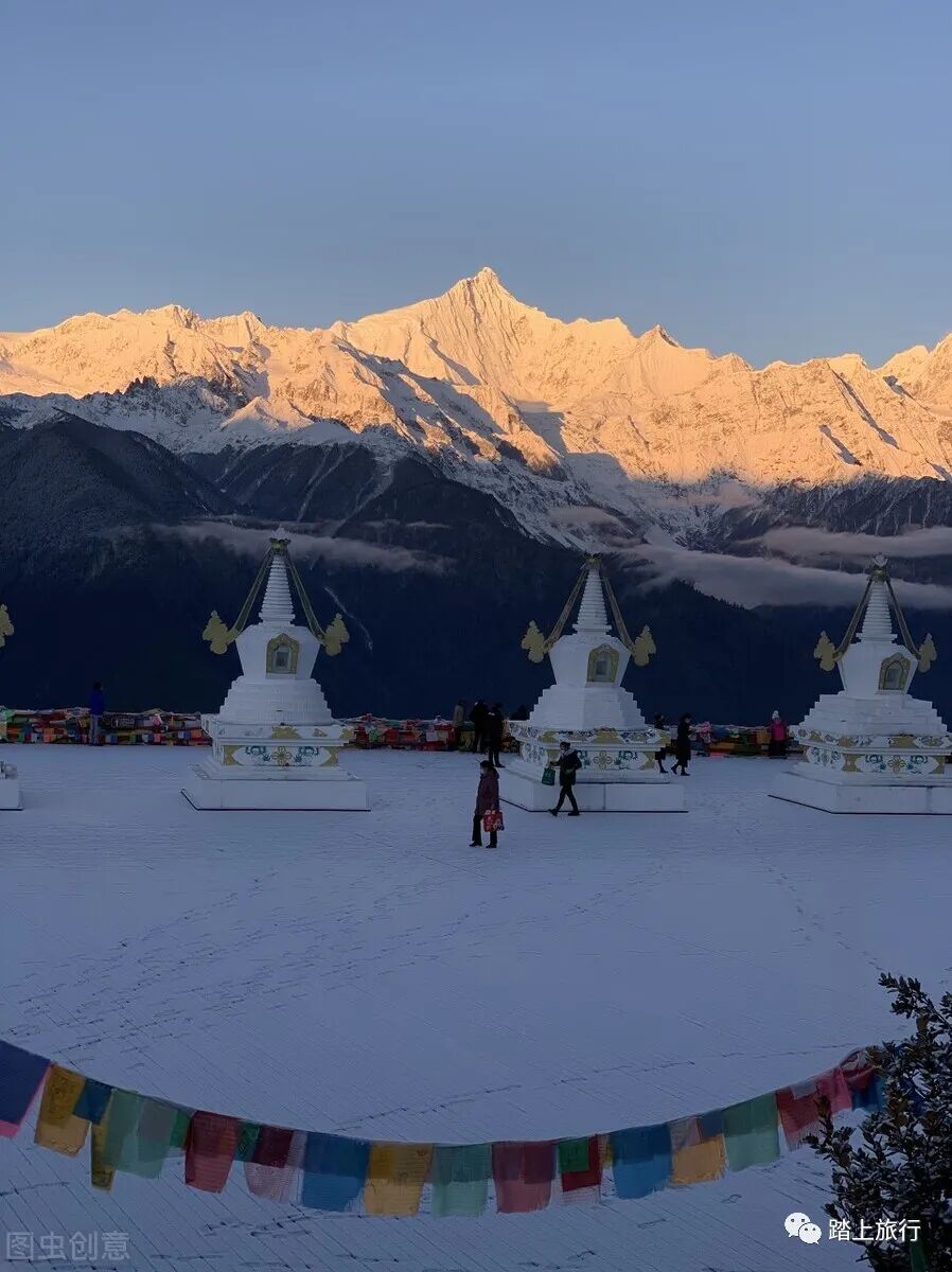 梅里雪山巍峨雄浑、冷峻圣洁,有一种震撼心灵之美,尤其是日照金山更是很多人梦寐以求却难得一见的胜景。