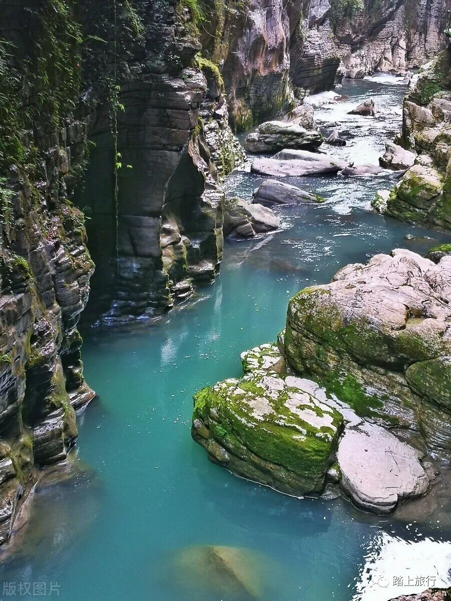 恩施地心谷,位于建始县,这里幽深峡谷,绝壁古洞,谷底一条清澈的小溪急流奔涌,如翡翠般的深潭,其景色犹如回到远古的侏更罗纪时代,是一个隐藏在悬崖峭壁中的世外桃源。