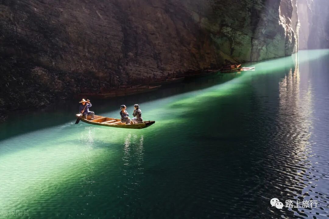 屏山大峡谷,位于鹤峰县容美镇。这里峭壁耸立,碧水环绕,地缝的河水清澈见底,一叶小舟漂浮在水面,犹如悬浮在空中一般,美妙绝伦,因而这里被游客称为中国的“仙本那”。