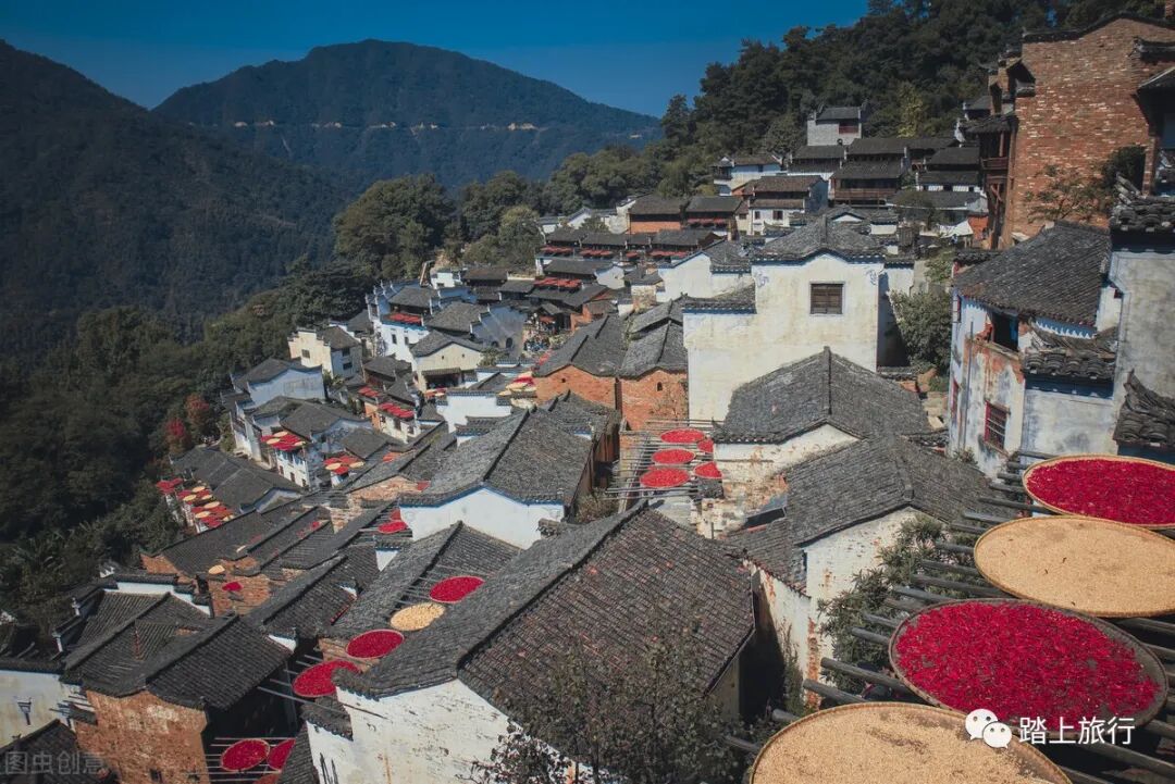 篁岭最美还属于秋季,晾架上铺上火红的辣椒️、金黄的高山黄菊或者玉米、橙色的柿子,一个中国最美的秋景就展现在你的眼前。