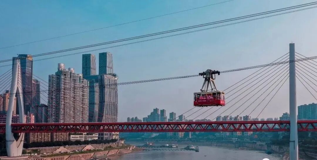 6、长江索道:单程20元,往返30元,在里面看这座城市的风景真的超赞的。乘坐索道下来后,可以在下面来一张长江索道的仰视照。