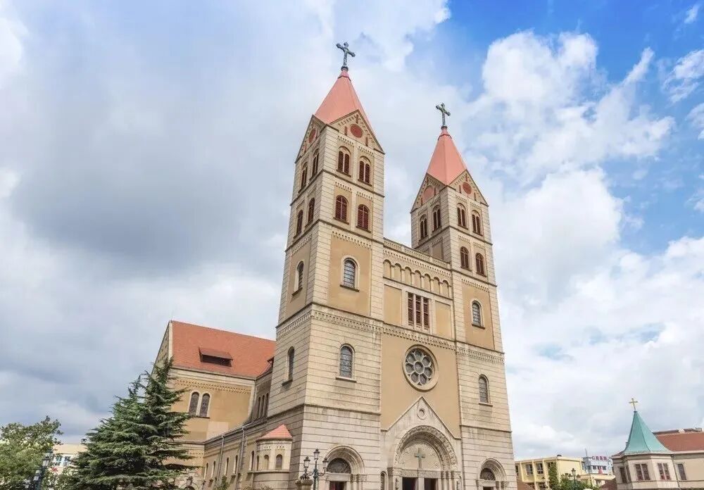 2、圣弥厄尔大教堂:如果你选择在崂山区下榻的话,建议先去国内唯一的祝圣教堂,然后去旁边的大学路和鱼山路网红墙,都在老城区,步行就可直达;再去一趟不远处的龙江路,在文艺复古的漫画世界里寻找宫崎骏的世界,这三个地方一天就可以完成。