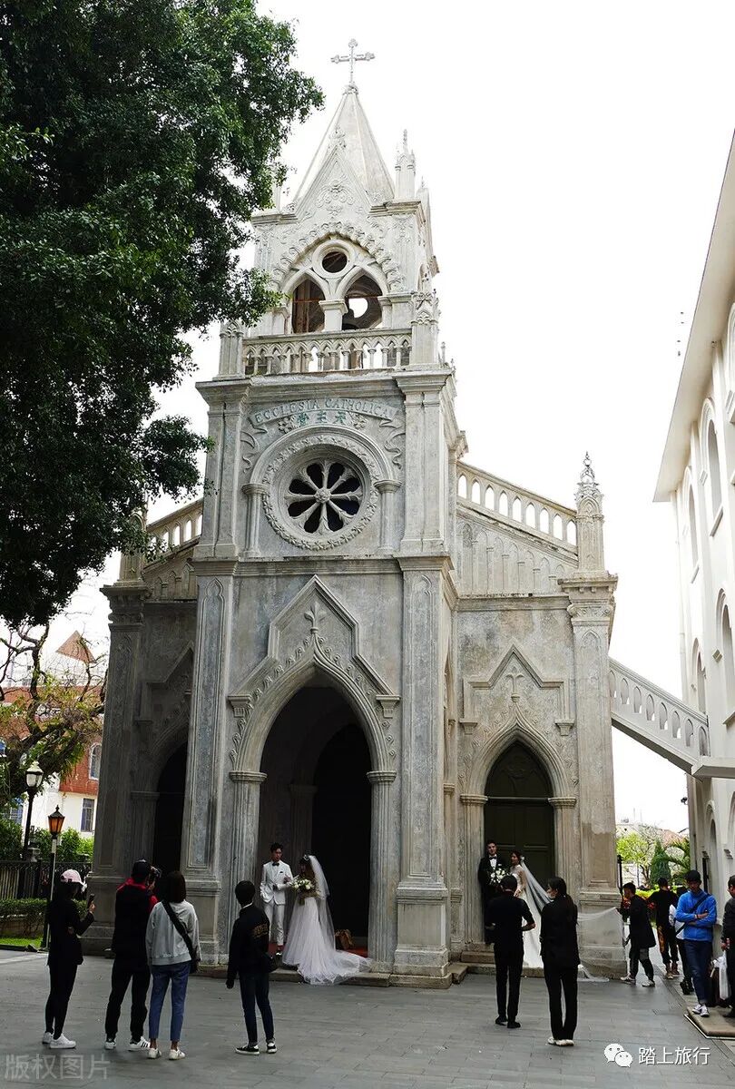 世界上恐怕很少像澳门一样,在如此狭小的区域里竟分布着如此众多的教堂,其中最美丽优雅的应该是玫瑰堂了,米黄色的粉饰、白色脚线、绿色门窗,散发着南欧的风情和浪漫。