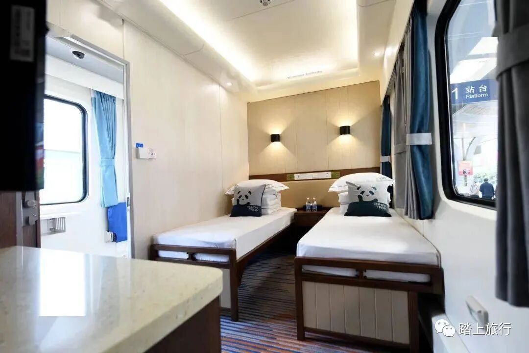 列车的包厢面积从 3.38到9.5平方米不等,最高等级的“熊猫悦府”车厢,拥有超大观景窗户和干湿分离的独立卫生间、淋浴房和电视、衣柜等装置。其它车厢设置了公共淋浴间,方便旅客使用。