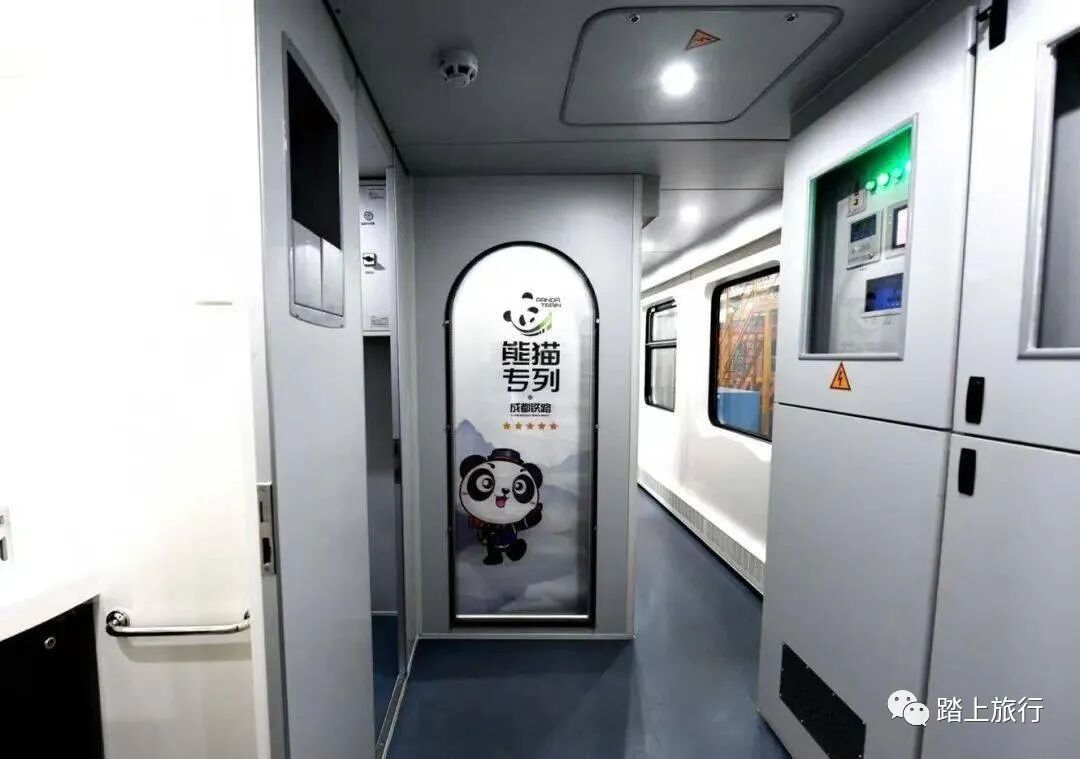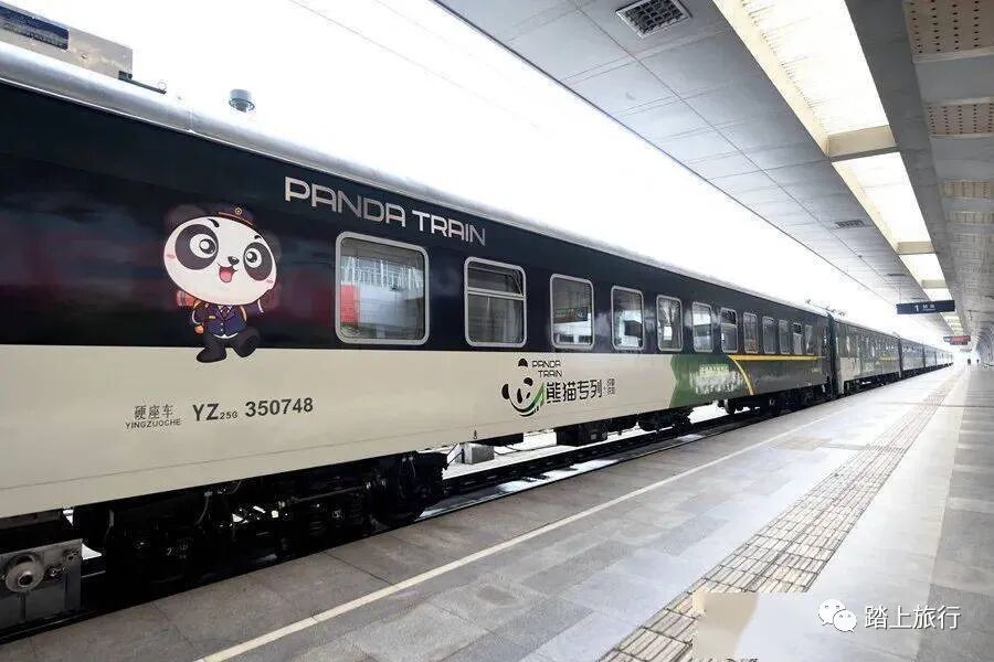 熊猫专列是按照“星级酒店”标准打造的豪华旅游专列,开行于成都站至峨眉站之间。除了名字以熊猫命名之外,车身内外装饰,包括房间、过道、厕所等空间都充满了可爱又有趣的熊猫元素。
