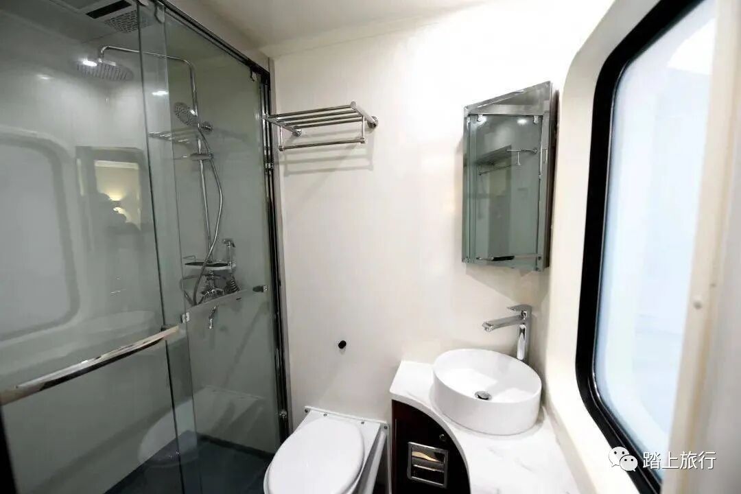 沙龙车设有KTV区、雅致吧台、超大观景窗和顶层大屏设计,可点歌、小酌和社交互动。