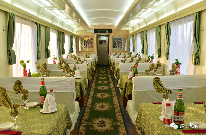 这趟旅游专列集旅游观光、餐饮住宿、私人定制于一体,人称“移动的星级酒店”,餐车有丰富的美食,旅客可以一边观看美景、一边品尝风味蒙餐和林区特色美食。