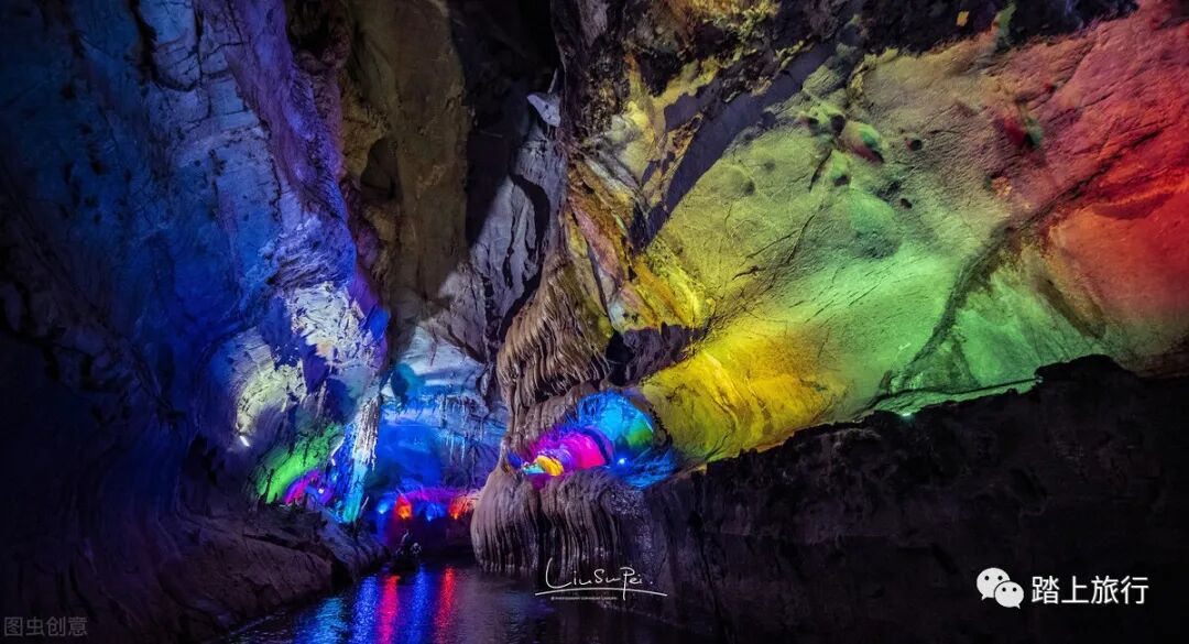 连州地下河,一个典型的喀斯特溶洞暗河景观,形成于2亿年前,可以乘船游览,洞内峰回路转,各种钟乳石造型奇特。