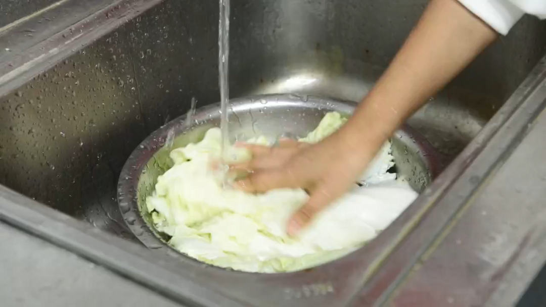 无论是这种卷心菜还是这种大白菜,它都是一层一层的。很多人都觉得扒开这个皮儿里边特别的干净,没有必要一片一片的进行清洗。但是我们也都知道它在地里生长的时候,是从里面向外生长的。像一些虫卵、小虫子、灰尘、泥土、杂质。都有可能残留在我们这个白菜的里面。所以我们这样一片儿一片儿的掰开之后进行清洗是非常有必要。