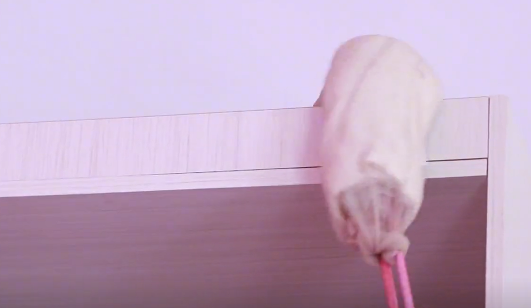 用来清洁高出卫生,非常的不错。平时空调上方衣柜顶部非常的宽,是非常难打理的,用上这个工具给它清扫一下,丝袜摩擦产生静电,静电可以吸附灰尘,可以快速将顶部的一些灰尘清洁得非常干净,是不是非常的不错呢?