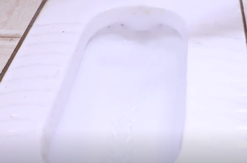 食盐的第三个用途,可以用来清洁马桶黄渍。大家可以看到马桶里面有很多的黄色污垢,又脏又臭,我们可以直接将食盐给他撒进去,食盐消毒又杀菌,可以快速的去除马桶异味。