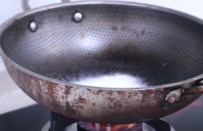 食盐的第一个用途,可以吸附衣柜里面的潮气,效果非常棒。首先,将食盐倒在锅中,我们可以多倒一些,然后开小火将食盐翻炒一到两分钟,炒至表面微微发黄,就可以捞出来备用,