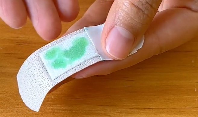 夏天天气爽朗,当然孩子都喜欢出去散散心,但是蚊子也喜欢出来,一不小心孩子就被叮了个大红包,几天也散不掉,不及时擦药还容易被感染,特别烦人。这时我们就可以用风油精搭配创可贴使用来防蚊了。首先我们准备一个创可贴,先将创可贴撕开包装纸。在创可贴的中间棉块上滴上几滴风油精。中间的棉块能够很好地吸收风油精,这样它的味道就可以持久的保留,一天也不会散去。