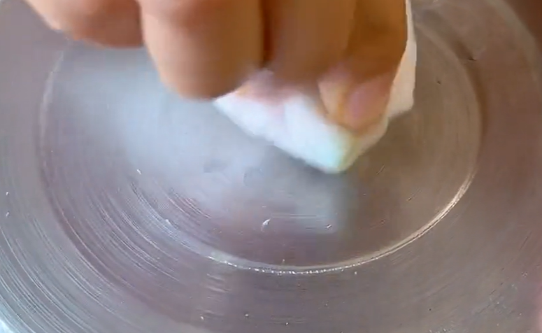 这个胶印就是指标签撕掉以后留下的内层胶水,这个就比较普遍了,比如饲料门口的小广告,或者是锅底碗底的贴纸,一般都只能撕下来表面内层,最后,都会留下一些印记,很脏也很粘,擦不掉也洗不掉,这时候,就可以拿出家中的风油精,然后涂抹在胶印的上面。这样敷大约五分钟之后,再用湿的抹布去擦就可以了,就是在他变干之前将它擦掉,丝毫不费力就可以去除风油精之所以可以轻松的去除胶印,也是根据相似相容的原理。