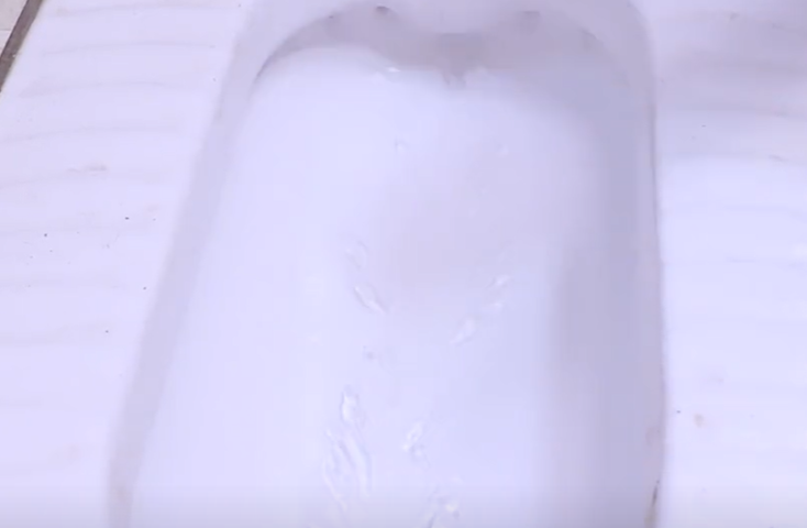 然后冲一下水,大家可以看到马桶被冲洗得非常干净,下次你可以用上这个方法。