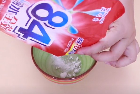 首先准备一个碗,在里面加入洗衣粉,洗衣粉可以多加一些,