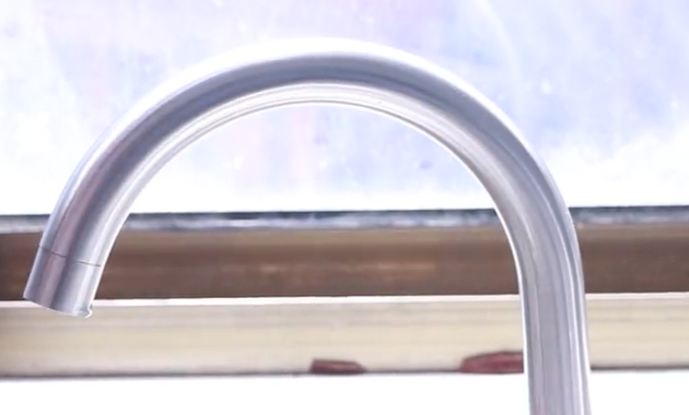 第二个用途可以用来清洁厨房水龙头上的油水渍,效果非常棒。大家可以看到水龙头上有很多的油水垢,非常的脏。我们将白醋洗衣粉的溶液喷洒上去,让它静置两分钟后,上面的油水渍都已经溶解了,