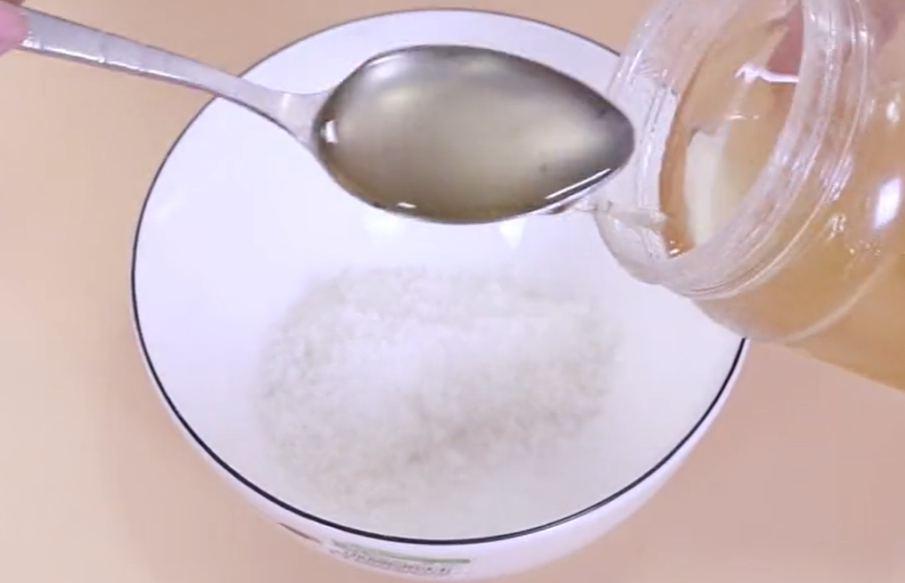 接下来,教大家做一款灭蚊神器。首先准备一个碗,在里面加入白砂糖,白糖可以多倒一些,因为白糖的甜味蚊子是非常喜欢的。接下来准备蜂蜜,取一勺蜂蜜直接放在白糖当中。