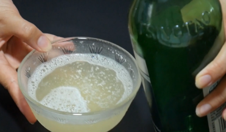 溶液倒好之后,接下来,我们需要给它摇晃一下,让啤酒瓶壁沾上白糖和蜂蜜的溶液就可以达到消灭蚊子的效果。直接将这个瓶子放在厨房,就可以有效地消灭蚊子了。