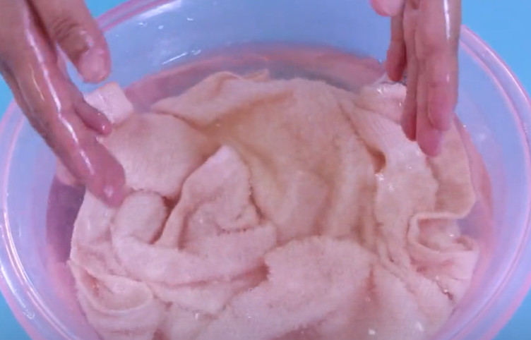 搅拌溶解过后,接下来直接将毛巾给它放进去,让它浸泡十分钟。用上这三样好宝贝,快速将毛巾上的污垢通通给它泡出来。白醋可以软化毛巾里面污垢,消毒又杀菌。食用碱去油污能力非常的强。而且花露水有很好的增香效果,三者双管齐下,毛巾清洁得干干净净。