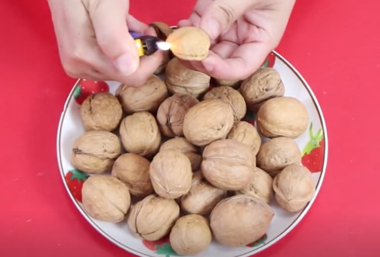 核桃壳的第一个用途可以快速去除卫生间里面异味。首先用打火机将核桃壳给它烧一烧,核桃壳里面含有硅油的成分,燃烧的时候有清香的烟味释放出来,就可以拿去卫生间去除卫生间里面异味。