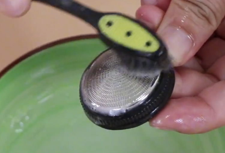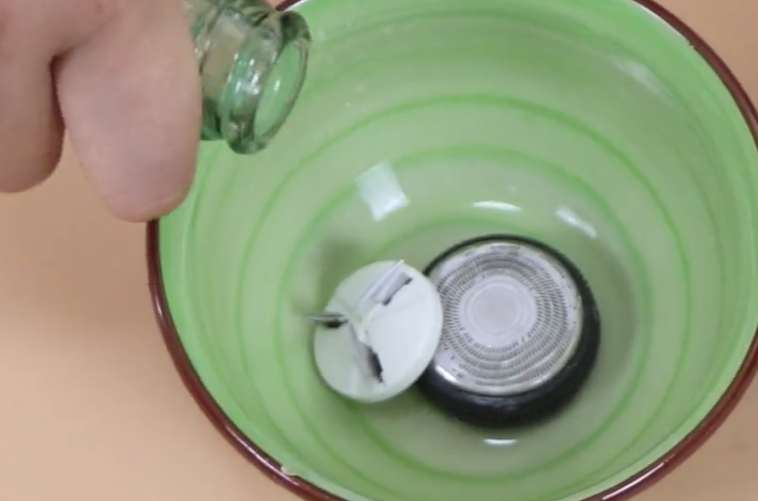 空转两分钟过后,明显感觉刀头变锋利了许多,接下来我们直接将它取下来,然后放到一个碗中,在里面加入白醋,直接没过刀头,让它浸泡五分钟。