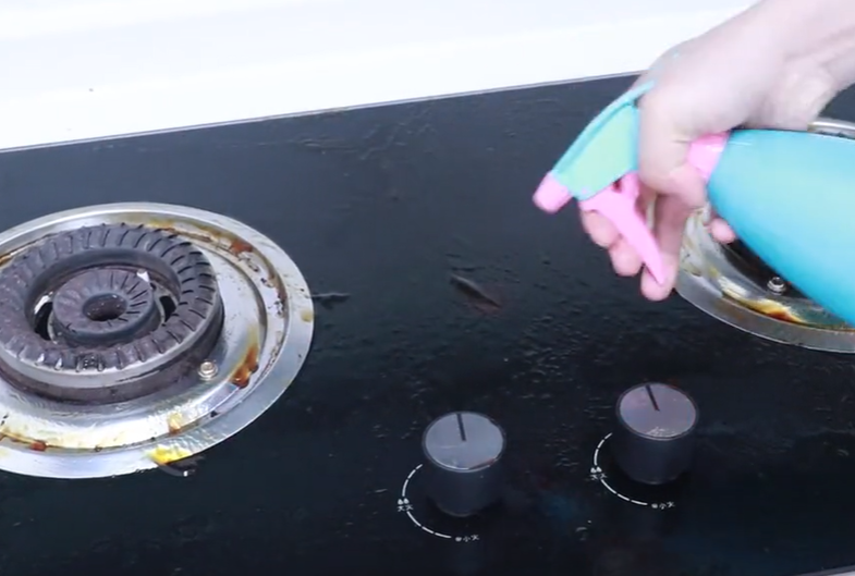 第一个用途,我们可以放到厨房用来清洁灶台油,效果非常的棒。如果家里灶台一段时间没去清洁的话就会非常的脏。大家不用担心,我们用上这款溶液来帮忙,