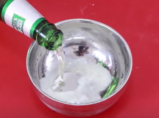 我们准备一块毛巾给他擦拭,可以很轻松地给她擦拭干净,就因为啤酒里面含有酒精,而且又是胶体溶液,用它来擦玻璃,其中的酒精会很快的挥发掉,这样玻璃可以擦得非常的干净,而且非常的透亮,不会留下任何的水渍,效果非常的不错。