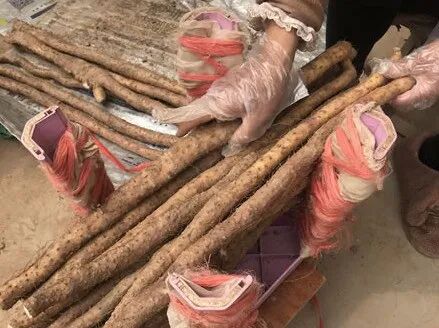 第三,我们可以掂一掂山药的重量,如果两个差不多相同大小的山药,我们掂起来比较重,这个山药一般情况下就是比较好的,因为比较重的水分充足,说明比较新鲜,如果这个山药掂起来没有另一个重的话,说明它已经放置一段时间,水分流失一部分了。