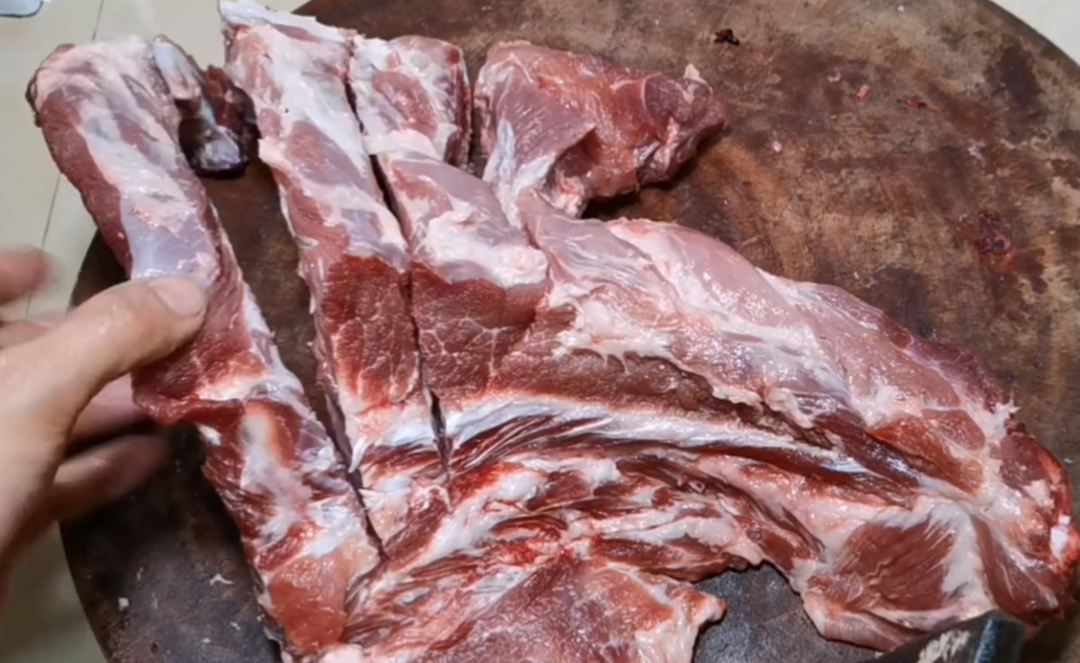 今天为大家分享如何去除排骨上面的毒素,以及如何将排骨打理干净。今天从我开餐馆朋友那里借了几块排骨,这是前排,就是靠近猪脖前面这一块儿。今天我们就用这个前排来讲一下排骨上面的毒素。