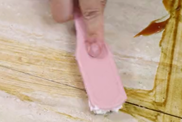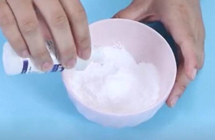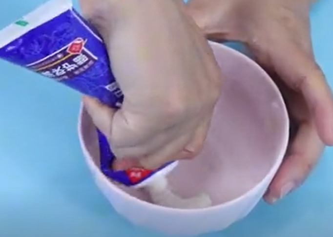 然后加入少许的清水,将它搅拌成膏状就可以拿去清洁瓷砖缝隙,效果非常不错。